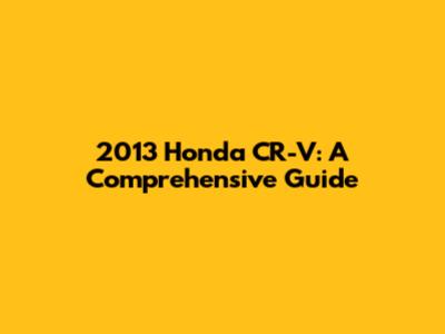 2013 Honda CR-V: Specs, Problems & Solutions