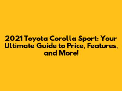 2021 Toyota Corolla Sport: Price, Features, And More!