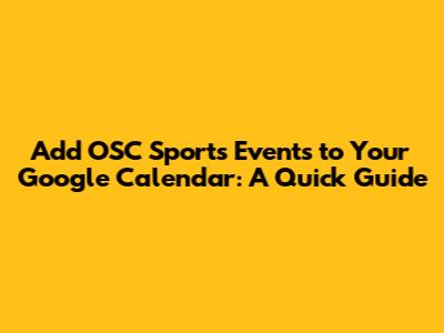 Add OSC Sports Events To Google Calendar: A Quick Guide