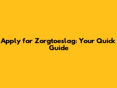 Apply For Zorgtoeslag: Your Quick Guide