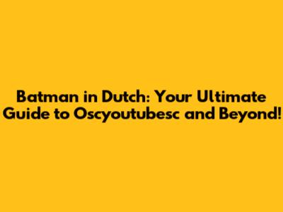 Batman In Dutch: Your Guide To Oscyoutubesc & More!