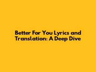 Better For You Lyrics And Translation: A Deep Dive