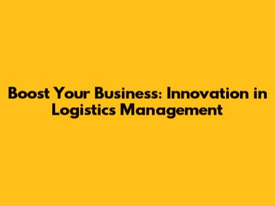 Boost Your Business: Innovation In Logistics Management