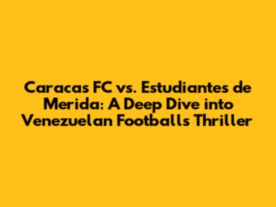 Hey sports fanatics! Get ready to dive headfirst into the electrifying world of Venezuelan football, where the titans of the game collide! Today, we're putting the spotlight on a match that ignites passions and fuels rivalries: Caracas FC vs. Estudiantes de Merida. This isn't just another game; it's a showdown steeped in history, brimming with talent, and always guaranteed to deliver nail-biting moments. We'll explore everything from the teams' histories and their current forms to the key players you need to know and what you can expect from their next face-off. So, buckle up, grab your favorite snacks, and prepare to be immersed in the exciting world of Venezuelan soccer, as we break down the captivating details of the Caracas FC vs. Estudiantes de Merida rivalry.