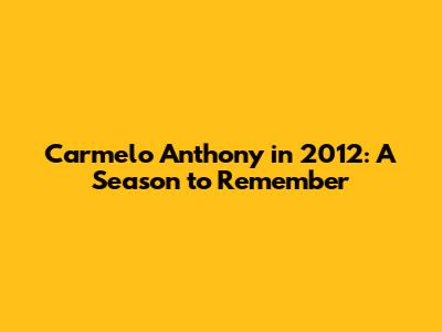 Carmelo Anthony In 2012: A Season To Remember