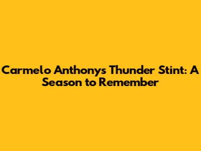 Carmelo Anthony's Thunder Stint: A Season To Remember