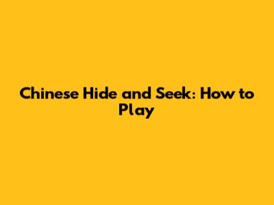 Chinese Hide And Seek: How To Play