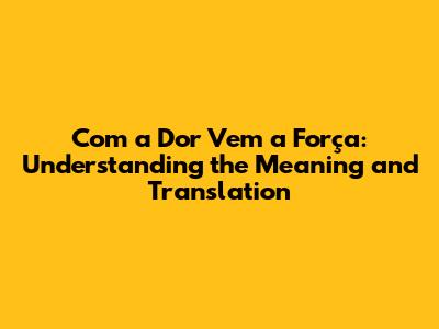 Com A Dor Vem A Força: Meaning & English Translation