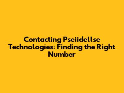 Contact Pseiidellse Technologies: Find Their Phone Number