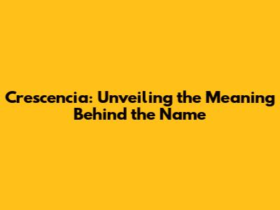 Crescencia: Unveiling The Meaning Behind The Name