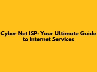 Cyber Net ISP: Your Ultimate Guide To Internet Services