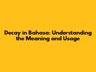 Decay In Bahasa: Understanding The Meaning And Usage
