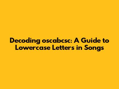 Decoding 'oscabcsc': A Guide To Lowercase Letters In Songs