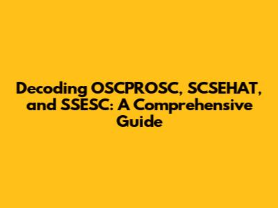Hey guys! Let's dive into the world of OSCPROSC, SCSEHAT, and SSESC. These acronyms might seem like a jumble of letters at first glance, but they represent important concepts and standards in specific fields. Don't worry, we'll break them down step-by-step so you can understand what they mean and why they matter. Think of it as a friendly guide to help you navigate these terms. We'll explore each one, providing clear explanations and context to make everything easy to grasp. Ready to get started? Let's decode these acronyms together!