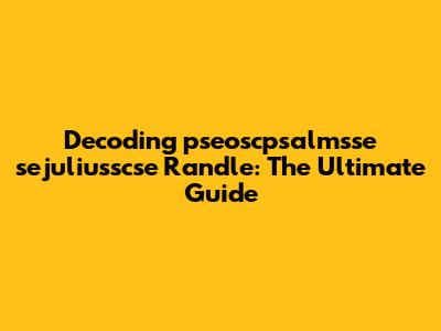 Decoding: Pseoscpsalmsse Sejuliusscse Randle - The Ultimate Guide