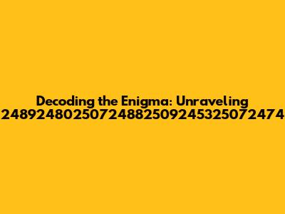Decoding The Enigma: Unraveling 24892480250724882509245325072474
