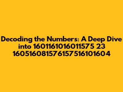 Hey guys, let's dive into something a little different today! We're going to break down the intriguing sequence of numbers: 1601161016011575 23 160516081576157516101604. Now, I know what you're thinking: “What in the world is this?” Well, that's exactly what we're here to explore! We'll be looking at what these numbers might represent, the potential contexts they could belong to, and maybe, just maybe, uncover some hidden meanings. This isn't your typical tech blog, but trust me, it's going to be an interesting journey. We'll be doing some serious detective work to see what we can find. Get ready to put on your thinking caps, because we're about to decode this numerical puzzle together. The main goal here is to try and understand the origin and meaning of this number sequence. It could be anything from a date, a code, or even something completely random. Our mission, should we choose to accept it, is to figure it out. Let's get started, shall we?