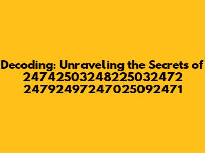 Alright, folks, let's dive headfirst into the fascinating, and sometimes perplexing, world of 24742503248225032472 24792497247025092471! I know, I know, it might look like a jumble of numbers at first glance. But trust me, there's a story here, a puzzle waiting to be solved. We're going to break it down, piece by piece, and see what we can uncover. Think of it like being a digital detective, or a linguistic explorer, depending on how you like to roll. This isn't just about the numbers themselves, it's about what they represent, the context they inhabit, and the secrets they might hold. It's like finding a hidden message in a bottle, except the bottle is the internet, and the message is...well, that's what we're here to find out! Get ready to sharpen those mental muscles, because we're about to embark on a journey of discovery. The beauty of it is that you don't need to be a math whiz or a tech guru to understand this. All you need is a curious mind and a willingness to learn. So, buckle up, because we're about to crack the code of 24742503248225032472 24792497247025092471!