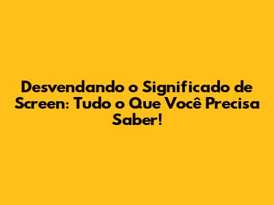 Desvendando O Significado De Screen: Tudo O Que Você Precisa Saber!