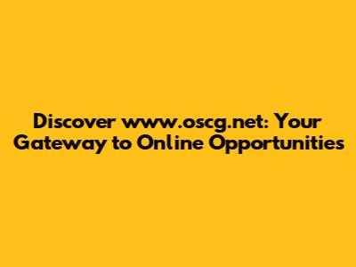 Discover Www.oscg.net: Your Gateway To Online Opportunities