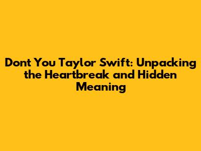 Don't You Taylor Swift: The Song's Hidden Meaning