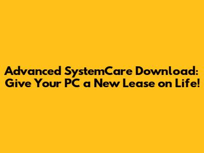 Advanced SystemCare Download: Give Your PC a New Lease on Life!