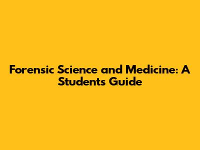 Forensic Science And Medicine: A Student's Guide