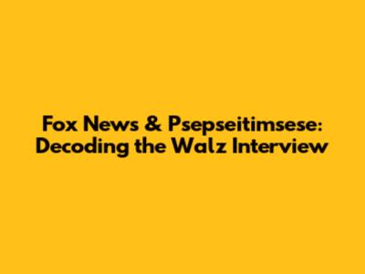 Fox News & Psepseitimsese: Decoding The Walz Interview