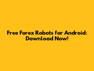 Free Forex Robots For Android: Download Now!
