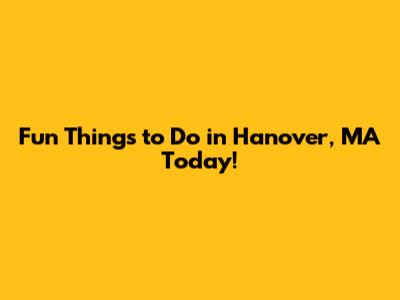 Hey there, fellow adventure seekers! If you're looking for fun things to do in Hanover, MA today, you've landed in the right spot. Hanover, Massachusetts, is a charming town with a lot more to offer than meets the eye. From outdoor adventures to cozy indoor spots, there's something for everyone. So, buckle up, grab your friends and family, and let's dive into some awesome activities happening in Hanover right now!