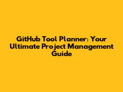 GitHub Tool Planner: Your Ultimate Project Management Guide