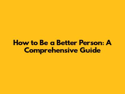 How To Be A Better Person: A Comprehensive Guide