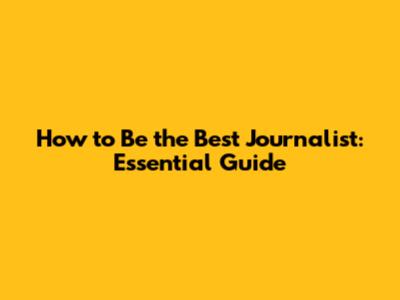 How To Be The Best Journalist: Essential Guide
