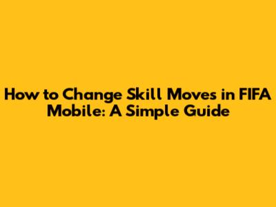 How To Change Skill Moves In FIFA Mobile: A Simple Guide