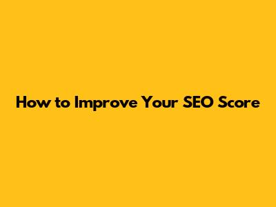 How To Improve Your SEO Score