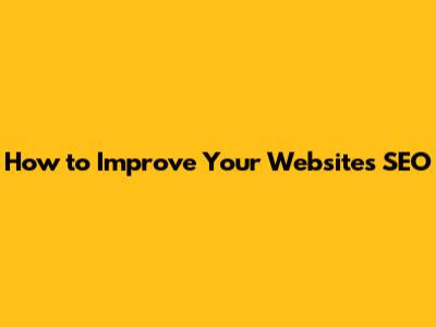 How To Improve Your Website's SEO