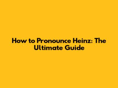 How To Pronounce Heinz: The Ultimate Guide