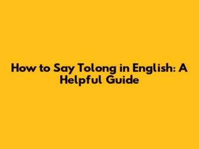 How To Say 'Tolong' In English
