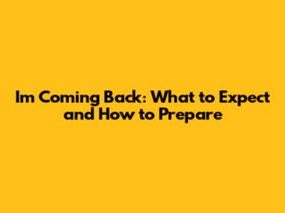 I'm Coming Back: What To Expect And How To Prepare