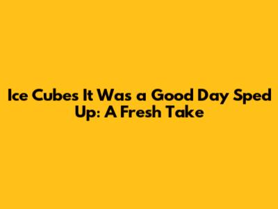 Ice Cube's 'It Was A Good Day' Sped Up: A Fresh Take