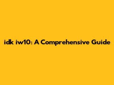 idk iw10: A Comprehensive Guide