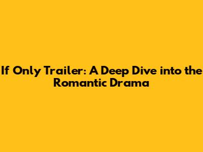 Hey guys! Ever stumbled upon a movie trailer that just grabs you and refuses to let go? That's exactly how I felt when I first saw the trailer for "If Only." This movie, a romantic drama, promises a rollercoaster of emotions, a poignant exploration of love, loss, and second chances. So, let's dive deep into what makes this trailer so compelling and why you should definitely add "If Only" to your watchlist.
