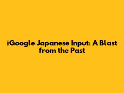 IGoogle Japanese Input: A Blast From The Past