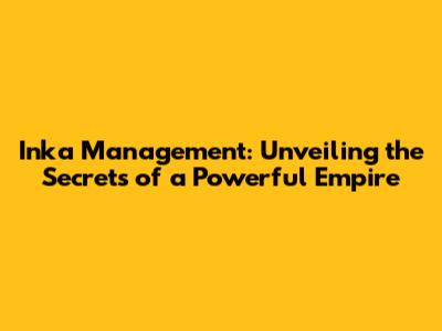 Inka Management: A Look At The Ancient Empire's Secrets
