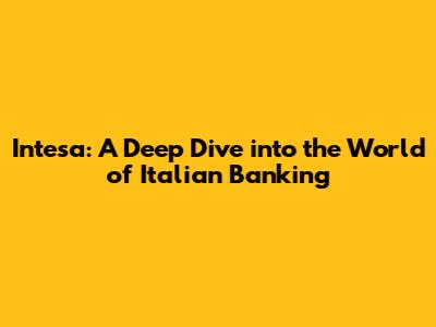 Intesa: A Deep Dive Into The World Of Italian Banking
