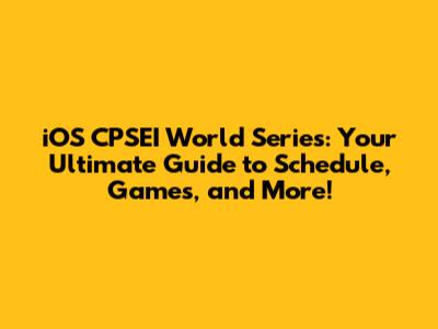 IOS CPSEI World Series: Schedule, Games & More!