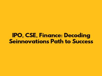 IPO, CSE, Finance: Decoding Seinnovations' Path To Success