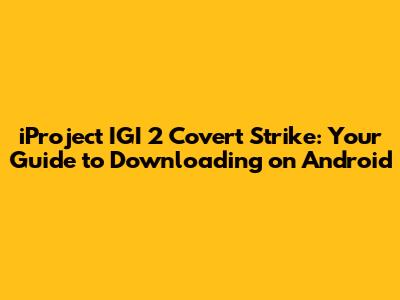 Hey guys! Ever wondered if you can relive those epic iProject IGI 2: Covert Strike moments on your shiny new Android device? You know, the thrill of sneaking around, pulling off those impossible missions, and feeling like a total action hero? Well, you're in luck! While iProject IGI 2: Covert Strike was originally a PC classic, the gaming world has a way of bringing beloved titles to new platforms. So, let's dive deep into how you can get this legendary game onto your Android phone or tablet and start playing again. We'll cover the common methods, what to expect, and maybe even some tips to get the best experience. Get ready, because we're about to embark on a mission to get iProject IGI 2: Covert Strike running on your Android device!