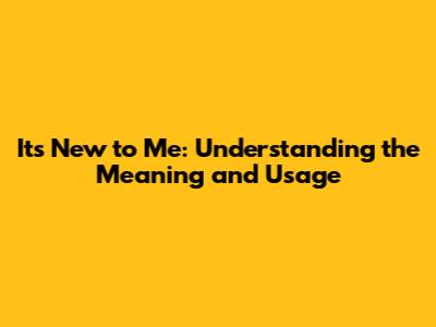 It's New To Me: Understanding The Meaning And Usage