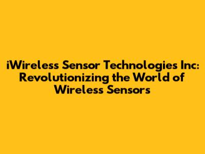 The Innovative Solutions Offered by iWireless Sensor Technologies